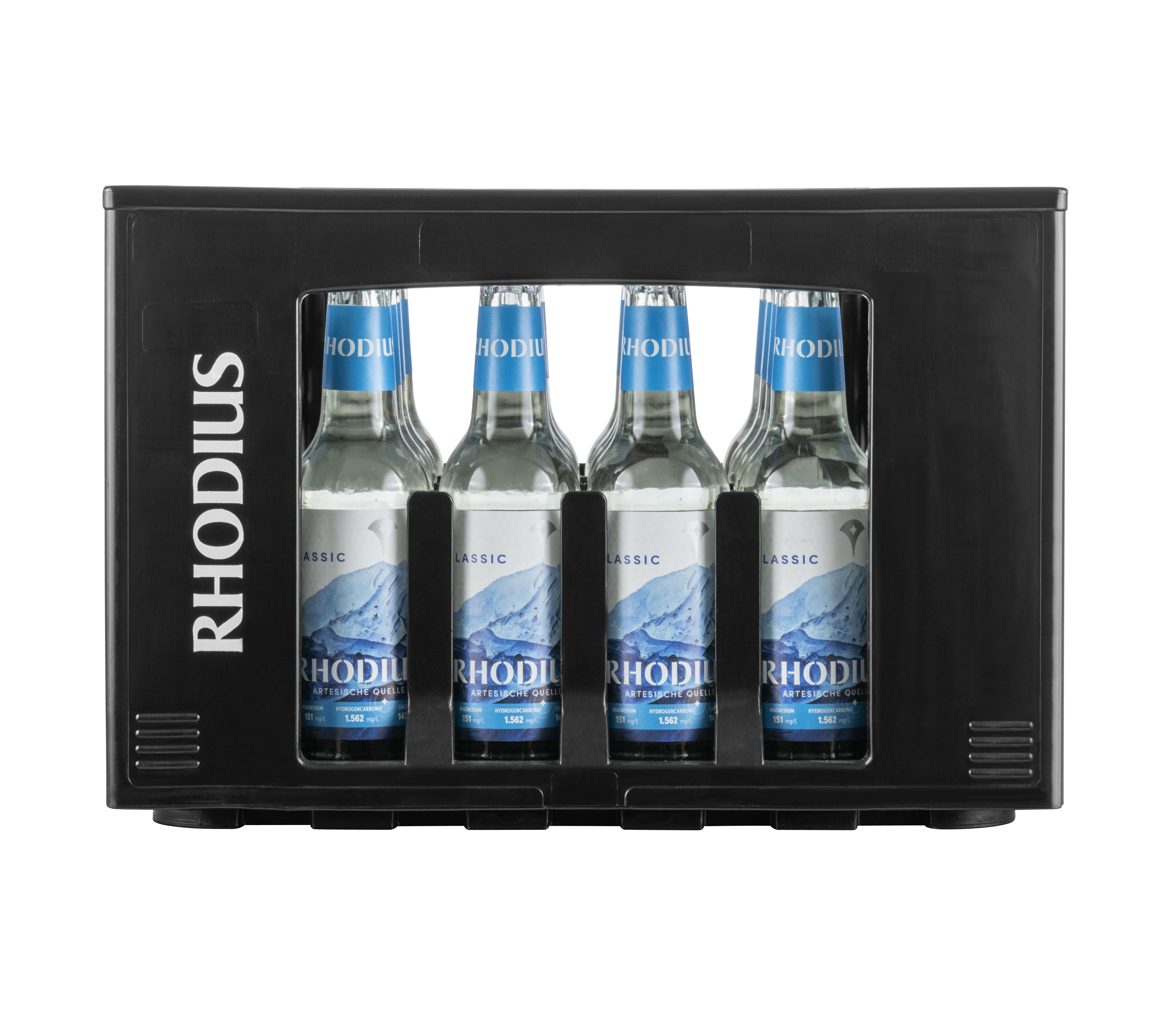 24 x 0,33 L Glas Kiste (frontal mit Aufsicht)