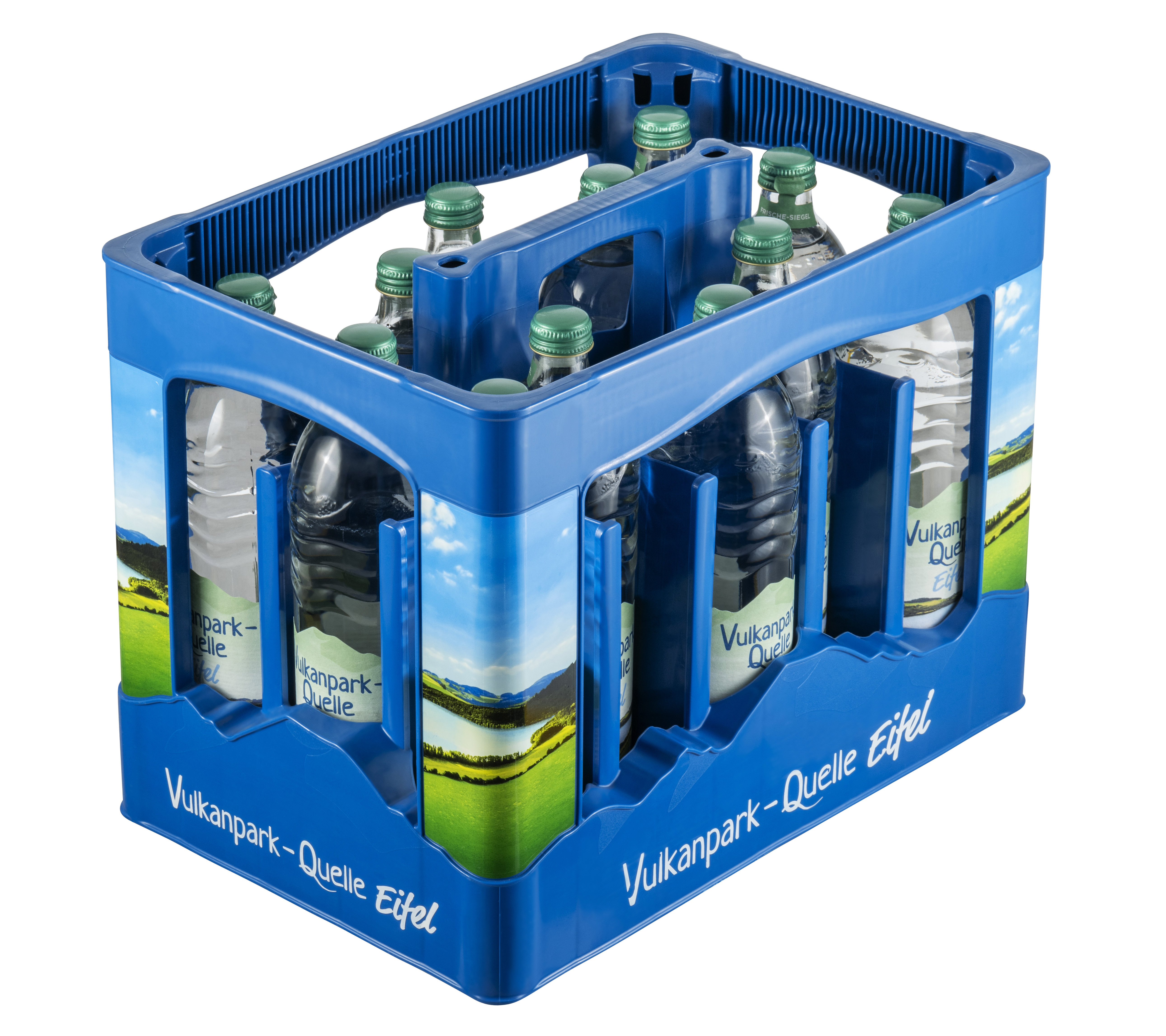 12 x 1,0 L PET Kiste (frontal mit Aufsicht)